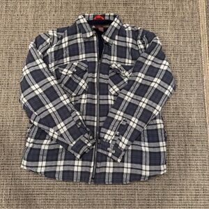 Stay stylish and comfortable with this plaid shirt jacket. Perfect for layering, this jacket features a classic black and gray checkered pattern. Ideal for casual outings or a relaxed day at home.
