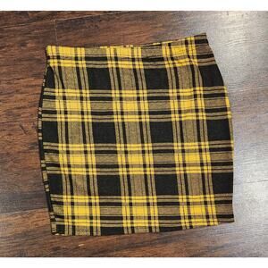 Plaid Skirt Yellow Black Elastic Waist Sz L Adara Clueless Y2K Preppy Grunge