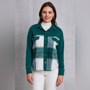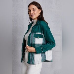 Plaid Snap Down Pocketed Dropped Shoulder Jacket