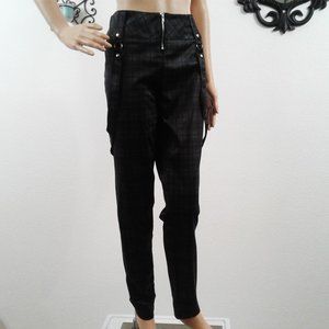 Plaid Strapped Wide Belt Loop Skinny Pants