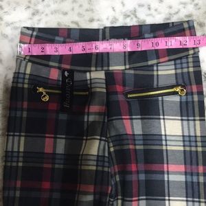 Really nice pants are a black-gray-white and yellow plaid combination! Have gold zipper pockets on side front. Please see all pics was a bit harder to get the lighting on these to show.