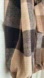 Stylish plaid sweater with a tie-neck design. Features a blend of tan, cream, and brown colors.
