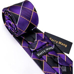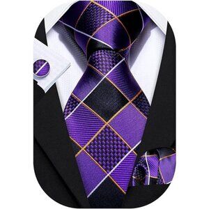 Plaid Ties Check Mens Necktie Set with Handkerchief Cufflinks Classic Stripe