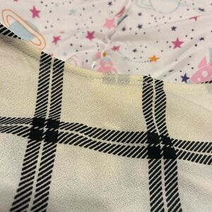 Stylish plaid V-neck top with a chic design. Perfect for casual outings or a day at the office. Features a classic black and white pattern.