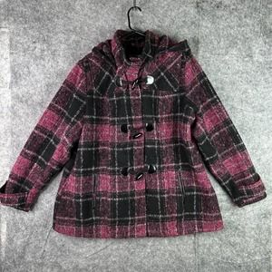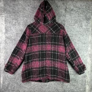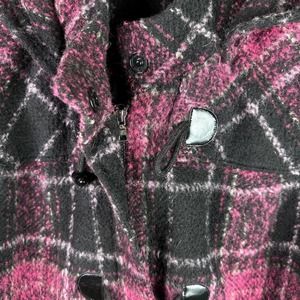 Stay stylish and warm with this chic plaid jacket. Featuring a blend of pink and black, this coat is perfect for any occasion. Its classic design ensures you look fashionable while staying cozy.