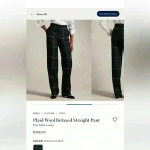 Plaid Wool Relaxed Straight Pant Polo Ralph Lauren size 8 Woman’s