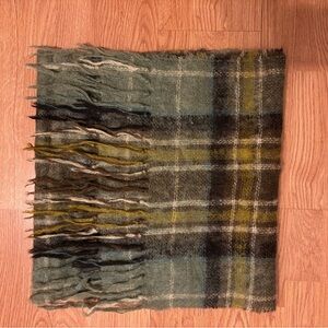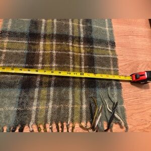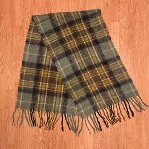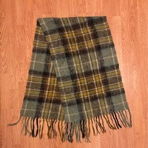 The "Plaid Wool Scarf" is a multicolor scarf designed for women, made from wool. This stylish accessory features a classic plaid pattern, perfect for adding a touch of warmth and fashion to any outfit during the colder months. Measurements are shown in photos, in excellent condition!