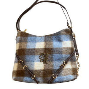 Tartan plaid checked pattern print fluffy shoulder hobo bag backpack