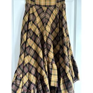 Stylish plaid skirt featuring a blend of yellow and brown hues. Perfect for adding a touch of elegance to your wardrobe. Reposhing as it was sadly too small, would best fit a 2-4.