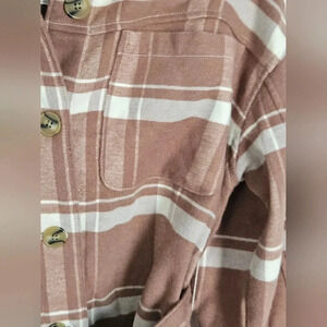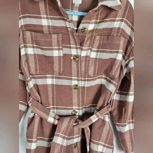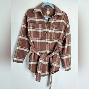 Plaid belted shacket in cream and light brown size small nwot a new day