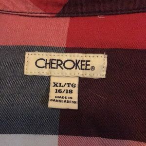 Cherokee brand button down shirt. Blue-red-white plaid. Great condition. Only worn 2-3 times.