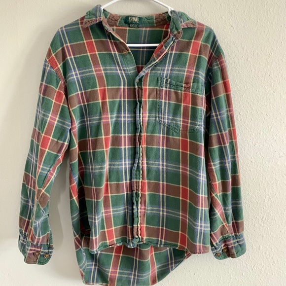 This shirt is extremely comfy! It is technically men’s but I loved wearing it as a flannel cover up or for a lazy day. It is a little worn but still fashionable. Trying to downsize!