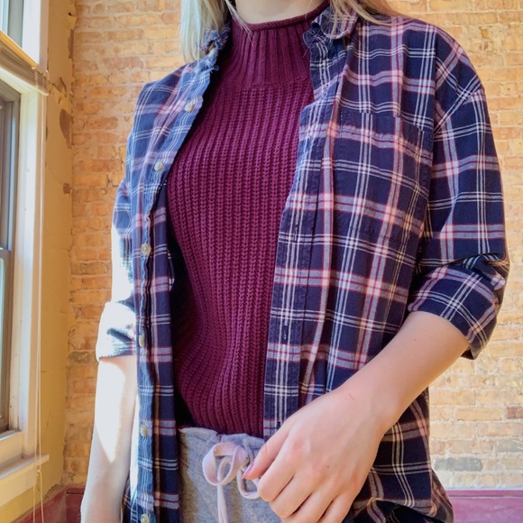 Navy blue and red button down shirt