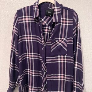 Effortless ultra soft rayon plaid button down shirt with a timeless feel. Size small 100% Rayon
