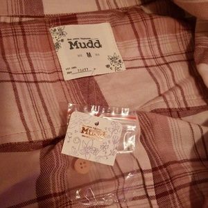 Pink and white plaid button up. Never worn. Got it for Christmas last year, it's to right around my arms.