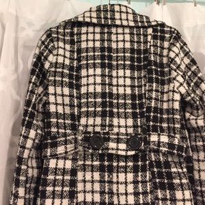 Only worn a few times. Has belt sewn onto it which is very flattering. Size medium is true to size. Love this jacket but it's never cold enough for me to wear it!