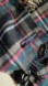 Cashmere plaid neck scarf in a multicolor mix of black, tan, pink, blue, and off-white. Fringe trim at ends. Made in Scotland. Pre-owned no flaws.