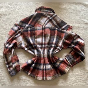 Plaid fall/autumn flannel top. Soft Twill fabric with 4 pockets. It’s oversized so it fits for small to medium. (I’m a small as reference)