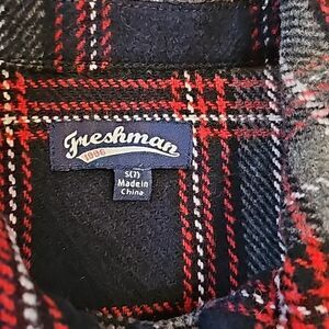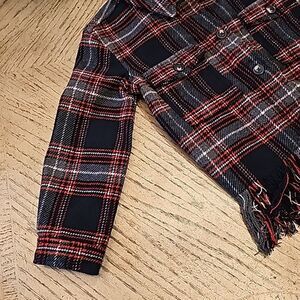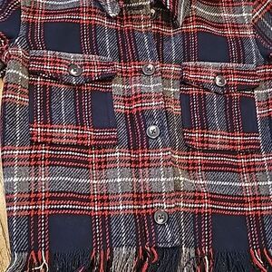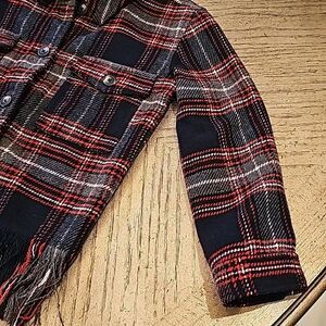 Girls plaid fringe hem button down shacket jacket size 7 navy red plaid, excellent new condition by Freshman