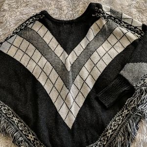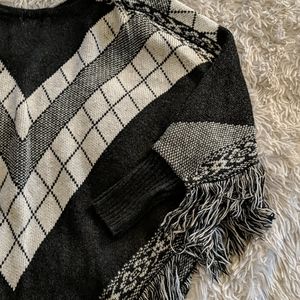 ✨Very cute poncho with a plaid argyle type of print on top and southwestern x and o pattern along bottom edge and on shoulders