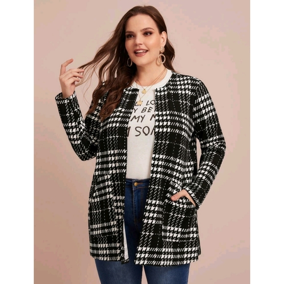 Houndstooth jacket with pockets. Made out of a stretchy thin material. size 2x in excellent condition.