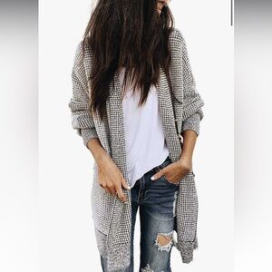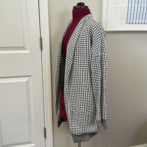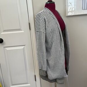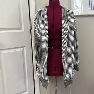 Brand new with tags open cardigan. Long body with long sleeves. Black and white design with ribbed sleeves and hem.