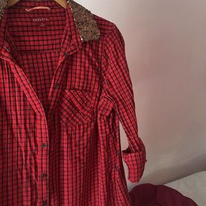 Cotton aid button down shirt with gold/copper sparkle collar. Size: Medium Fits: 4/6. Perfect festive shirt for the fall/winter holidays.