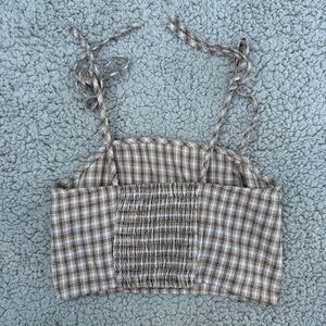 Trendy checkered tank with adjustable straps. Ideal for casual wear.