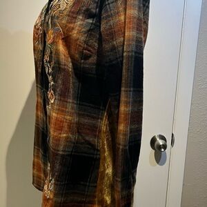 Plaid velvet back embroidered blouse nwt by Paparazzi