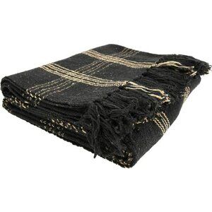 Plaid woven cotton throw blanket black tan fringe farmhouse rustic home decor 60
