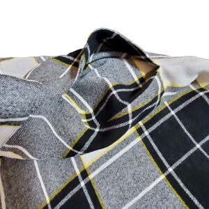 NWOT Black, white, and yellow plaid wool-blend gauze. Preppy-cool plaid skirt with front raw-edge draped panels on the left side. Lined. Banded waist, concealed side zip closure with a right side pocket.