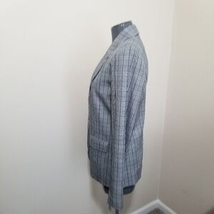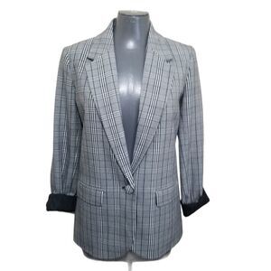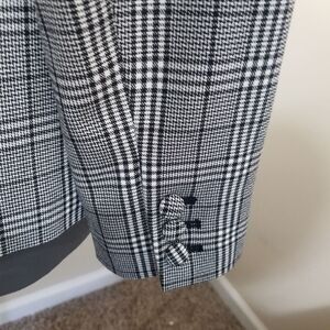 Nwot plaid blazer with a gray base with black and white print. Comfy one button style.