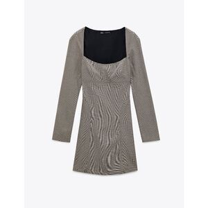 Plaid Brown Tailored Dress ZARA Square Neckline