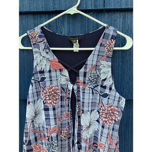 Description: Blue Plaid Blouse, with pink, blue and white flowers decorating exterior. No stains or holes to be found.