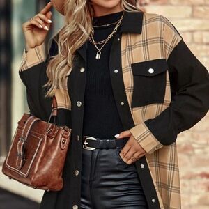 Plaid Panel Drop Shoulder Curved Hem Coat