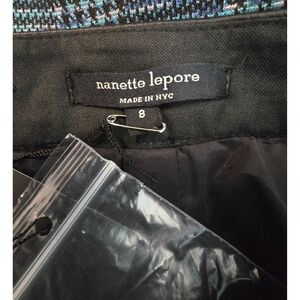 Elevate your wardrobe with this Nanette Lepore plaid pencil skirt. Crafted in New York, it combines wool's warmth with leather's luxe feel. Ideal for creating a sophisticated look, it offers a flattering fit and timeless style. A versatile addition for both office wear and evening outings.