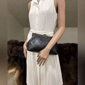 One of a kind. Chic design, great quality & multi use style purse. Handmade from premium Deer hide leather (very supple leather), with exquisite push-lock metal frame. This purse holds a lot, spacious enough for your phones, wallet, cosmetics, compact umbrella & other items that you may need. Includes 2 style straps and 1 chain, use in multiple ways, hand carry, wear as a wristlet, shoulder bag or crossbody.