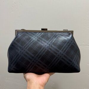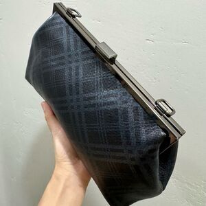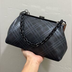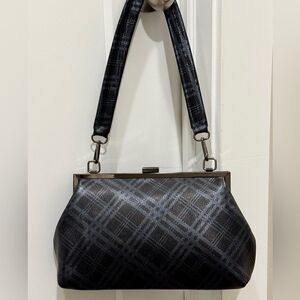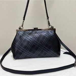 Plaid Print Genuine Deer-hide Leather Purse/Push Lock Metal Frame Shoulder Bag