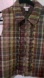 Quilted plaid vest with floral embroidery down both sides of zipper and brown lining. Great vest looks brand new, gorgeous for year round wear - awesome color scheme with lively neon orange and green diamond quilted tartan.