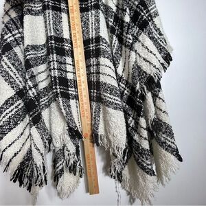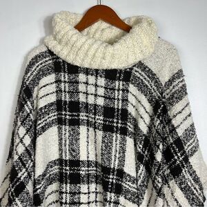 Plaid Turtleneck Fringe Trim Poncho size S/M