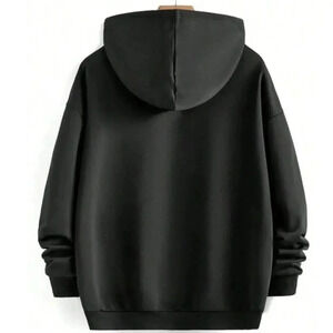 Plain Black Pullover Hoodie Poly Blend Loose Fit Drawstrings Size Large