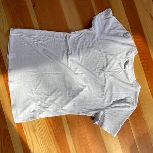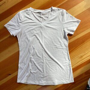 60% Polyester /15% Rayon / 5% Spandex - makes for a t-shirt that is comfortable, fits nicely, and holds up in the wash. I would keep this but its too big. Says Medium but I would call this a large.