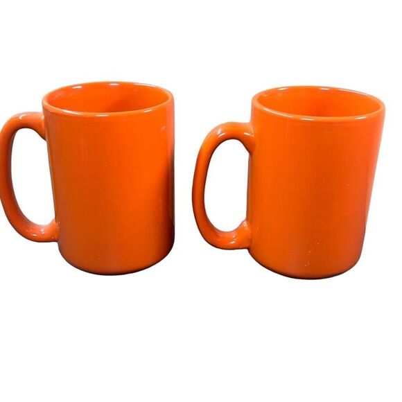 Plain Orange Ceramic Hot Cold Coffee Tea Mug Cup Size 3.25" x 5" Set Of 2