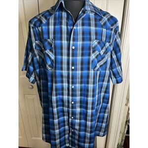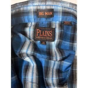 Plains Big Man Western Wear Mens 2X Blue Plaid Short Sleeve Pearl Snap