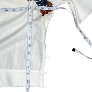 Plains & Prints Off White Floral Abstract Blouse Bell Sleeve Strappy Back Sz 2