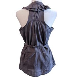Plains & Prints Pleated Tie Waist Ruffle Top Size 4