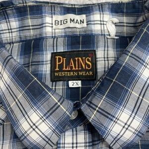 Plains Shirt Mens 2X Western Wear Snap Button Up Pockets Short Sleeve Plaid