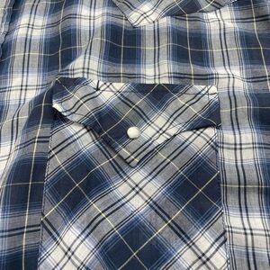 Plains Western Wear Big Man Classic Plaid Snap Button Up Shirt Short Sleeve Pockets
