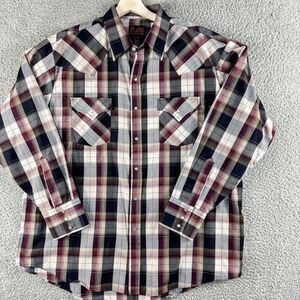 You are purchasing a Plains Western Shirt Mens Extra Large Red Plaid Pearl Snap Cowboy Southwest. It is gently pre-owned and in great shape with no visible issues observed - check out the pics for details.