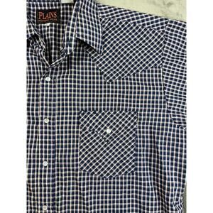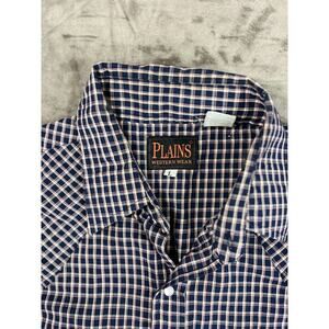 Plains Western Wear Men's Large Plaid Shirt Blue Pearl Snaps Western Cowboy Ss